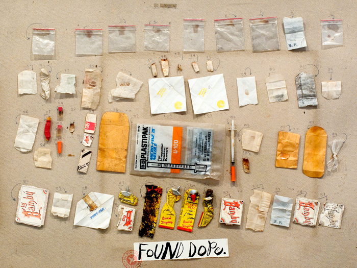 Documenting what's been found in the streets, in buildings, anywhere, noting and cross referencing by type and location, bagging it, and making it art.