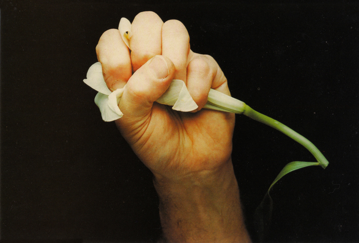 The Museum's blurb would have it thus: "In the final panel, a white lily, a symbol of peace, is being crushed. The imagery of the flower is important in Rolfe's work, representing life and death, consolation and sympathy. Here, the fact that the hand is grasping the flower tightly may represent life being suppressed by the hand of man."