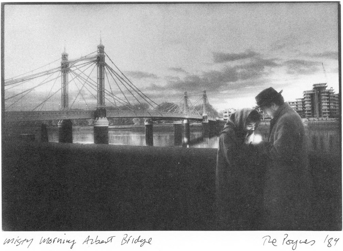 81. The Pogues. The sort-of-cover for the 12" vinyl version of Misty Morning Albert Bridge. While the same image graced the cover, the sticker promised that within was a limited edition "Albert Bridge" print. Yes, I got in fast for this one. The print is tones of black and white, while for some reason the cover is sepia-toned.